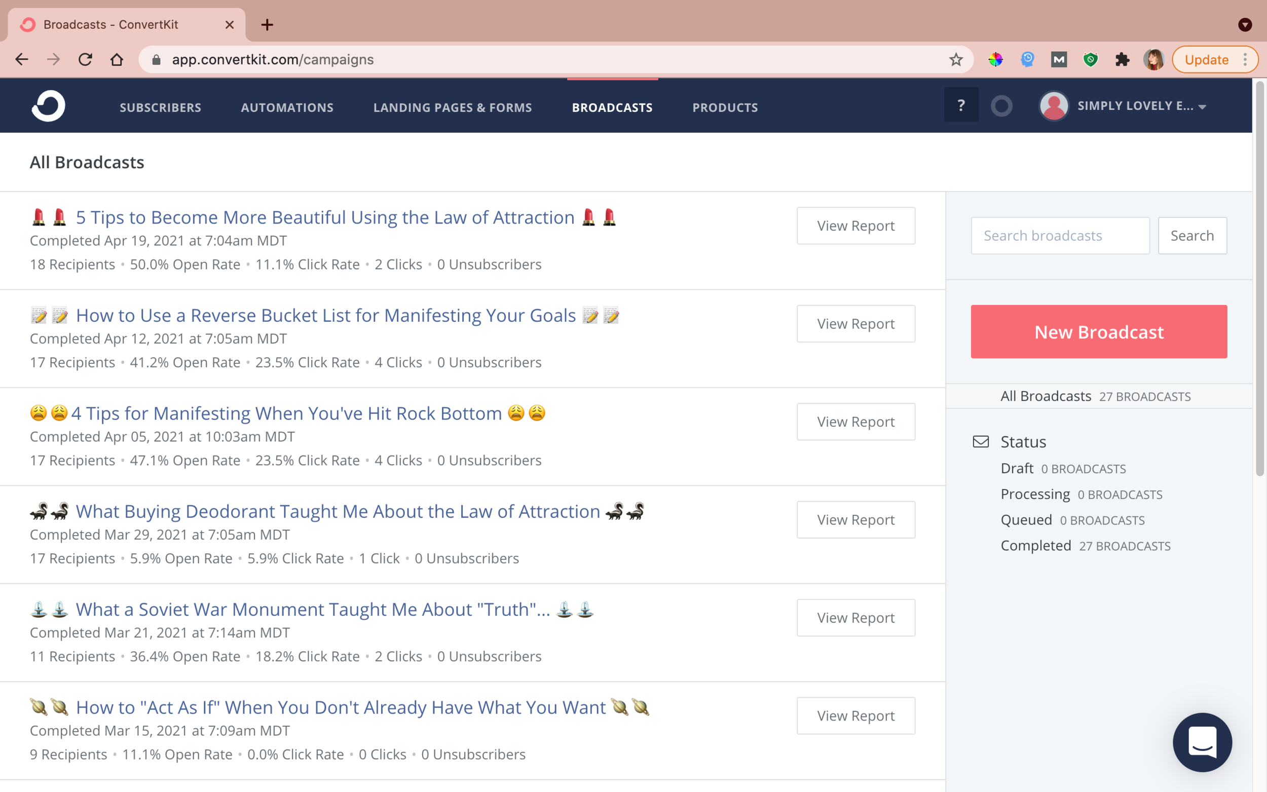 When users provide me their email in exchange for the e-book, they get added to an automation sequence (using ConvertKit) in which they receive the e-book the first day and are asked respond in the email about their biggest fears or confusion with the Law of Attraction. This is to demonstrate that I care about my users and want to hear from them and provide an easy way to establish a connection between us. The next day, the user receives an email that goes into my personal backstory on why I started the website and how I intend to help the user use the Law of Attraction to work through their limiting beliefs and manifest what they want.